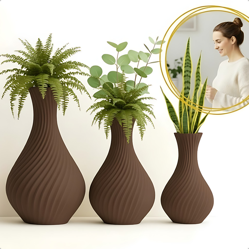 Decore com personalidade, leveza e bom gosto. O Kit 3 Vasos Decorativos em Espiral foi criado para quem busca mais do que beleza: ele entrega sofisticação, harmonia e um toque moderno que valoriza qualquer espaço — da sala ao escritório.