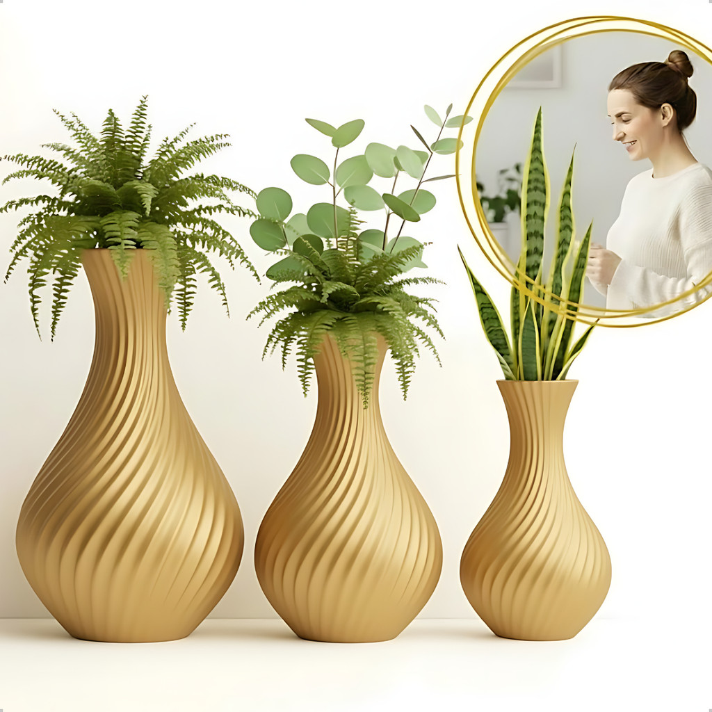 Kit 3 Vasos Espiral – Elegância e Design que Transformam Seu Ambiente
